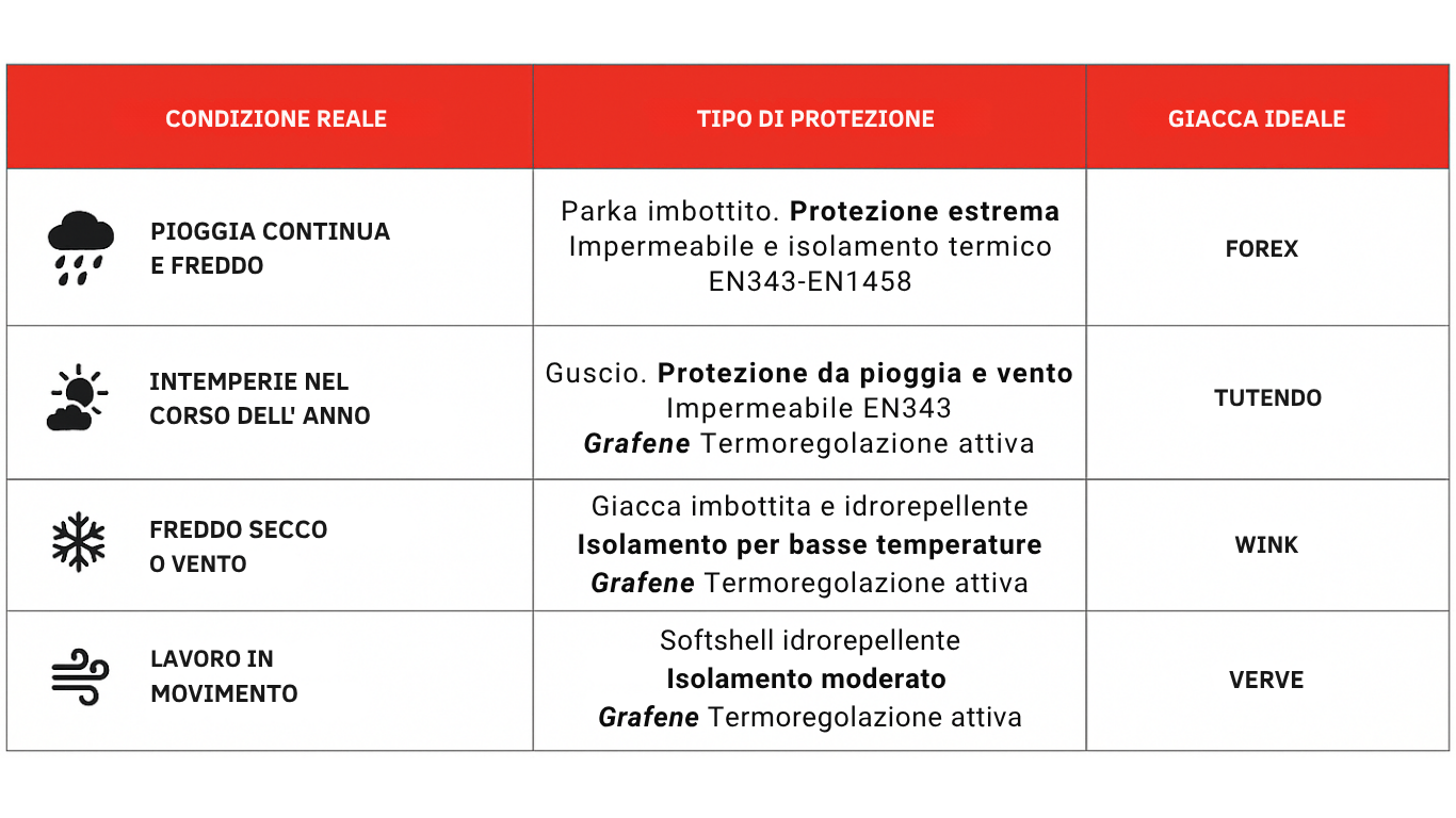 Se lavori all’aperto, anche quando piove, lo sai: non basta che sia “impermeabile”